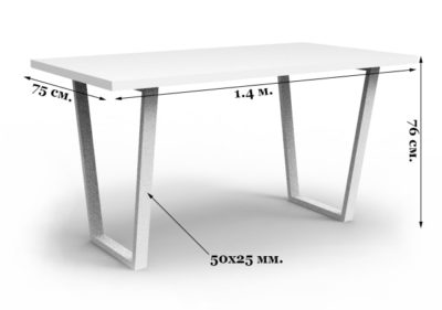 Стол – Трапеция имеет четыре ножки, попарно соединенных между собой и сужающихся у основания. Мы предлагаем данную модель стола в белом и черном цветовом решении. Это касается как металлической конструкции , так и щита стола. Стол в стиле лофт может быть изготовлен как из натурального дерева, так и из ДСП (что позволяет значительно снизить стоимость товара).
